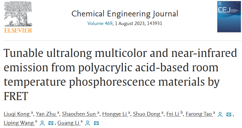 Chemical Engineering Journal | 公司李光课题组在颜色可调多色发光和近红外发光的聚丙烯酸基室温磷光材料研究方面取得进展