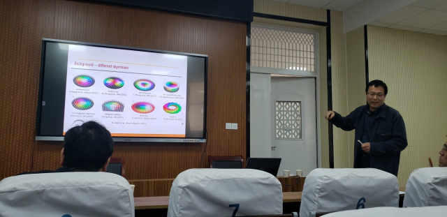 程振祥教授在报告中介绍了多铁材料研究的背景和近年国际上关于这方面内容的研究趋势。随后,程振祥教授分别介绍了其团队在具有强烈耦合作用的单相多铁材料及高性能压电材料、电介质储能材料等方面的研究工作。此外,程教授还介绍了铁性材料包括铁电磁性多铁材料在电催化水分解方面做的大量开创性工作。最后,参会师生踊跃提问,就多铁材料的相关问题进行了深入的交流和讨论,程振祥教授认真细致地解答了师生们提出的问题。