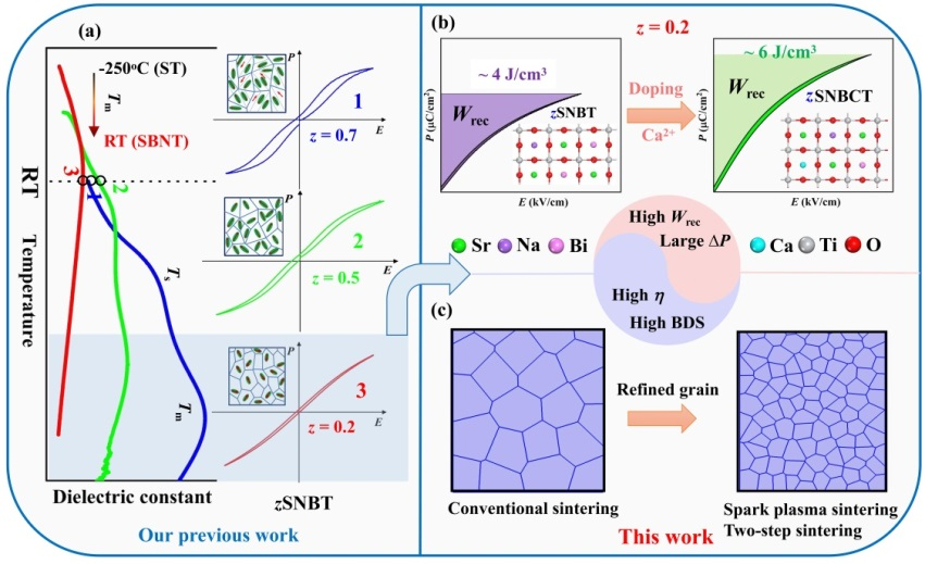 图1. 多尺度优化策略实现SrTiO3基陶瓷高储能性能思路图