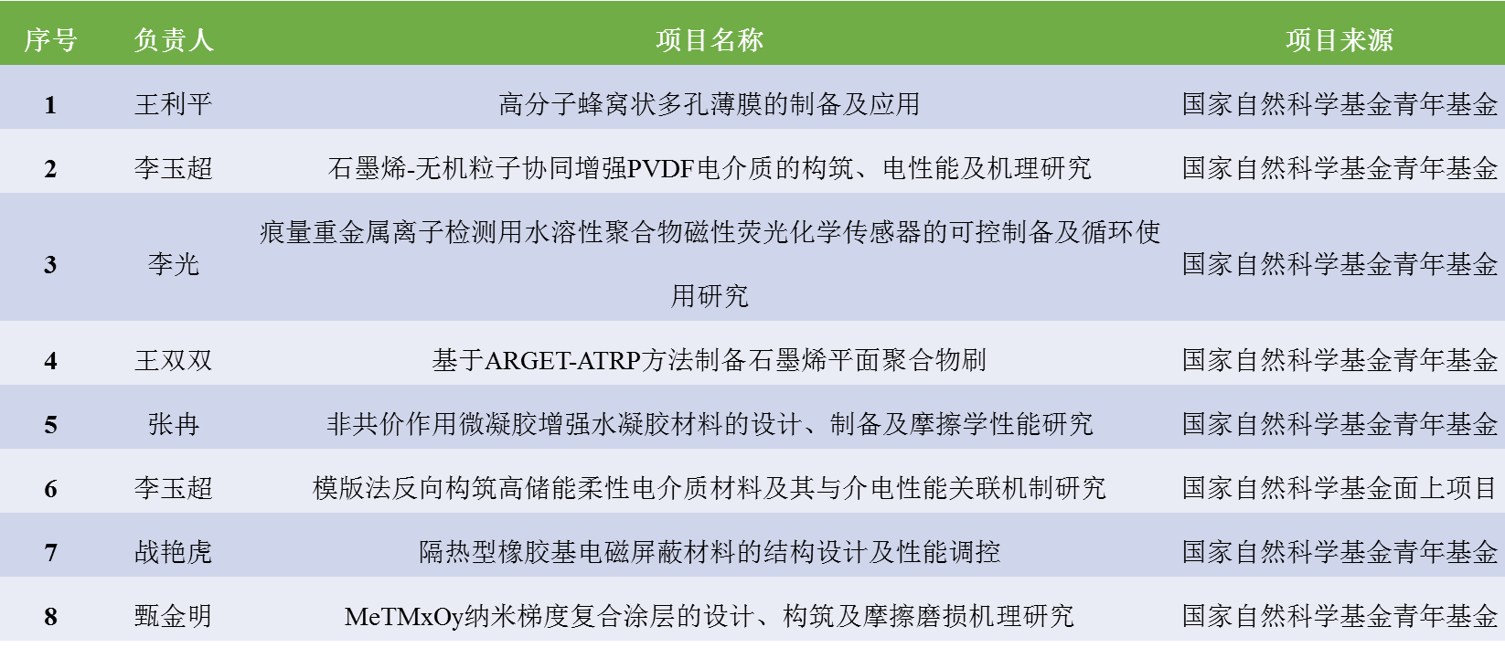 1. 专任教师中具有博士学位的教师占比超过88%,教师在中国科学技术大学、上海交通大学、香港城市大学、北京化工大学、中科院北京化学所、中科经理春应化所、中科院兰州化物所等知名高校及科研院所获得博士学位。近年来,获批国家基金9项,省部级课题10余项以及横向课题多项。此外,还聘请了多名行业专家和企业技术骨干为本专业兼职教师。