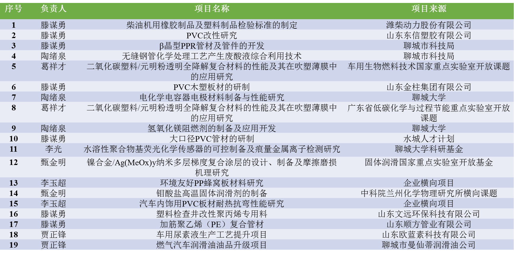 2. 校企合作,开展人才培养工作。面向高分子产业需求,依托地方经济特色和优秀教师团队,校企合作、校校合作、校内合作培养高分子材料制备、加工及应用的工程技术高级人才。