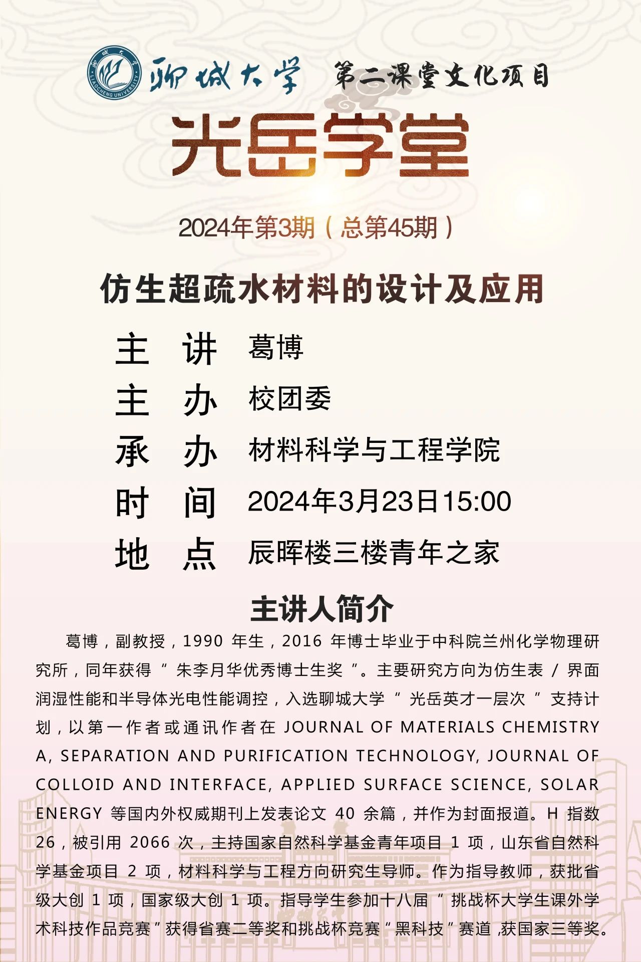 为使员工深入了解材料专业,增强专业认同感,拓宽学术视野,2024年3月23日,由校团委主办、信誉最好的十大体育平台承办的“光岳讲堂”活动在信誉最好的十大体育平台东校区辰晖楼三楼青年之家举行,本次活动特邀葛博副教授担任主讲。