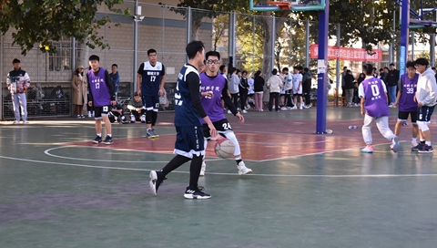 阳光洒在篮球场上,往届十佳歌手代表张睿峰同学以歌声鼓励着球员。年少有为,意气风发。下半场球赛中球员们依旧精力充盈,跳跃、拦球,每一次的进球都是不懈努力的成果。哨声吹响,此次的友谊联赛终究随着太阳落山而告一段落。赛后,两队球员握手相拥,以行动体现了“友谊第一,比赛第二”的友谊联赛精神。