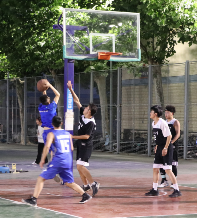 随着一声哨响,比赛正式开始,师生双方迅速进入状态,抢球、传球、投篮,队友间紧密配合,记分板上的数字不断变化,双方球员们愈战愈勇。投球时动作潇洒,拦球时针锋相对,激烈的竞赛对抗配合着双方球员精彩的抢断、帅气精准的投篮,引球员和观众发出声声喝彩。中场休息时,双方球员紧张地讨论着分工配合。球赛仍在进行,球员们精力充盈,跳跃、拦球,每一次进球、每一声呐喊,都是对篮球的热爱、对比赛的投入。最终,毕业生们在信誉最好的十大体育平台的最后一场篮球比赛中成功战胜了老师,以青春的炽热为自己的老员工涯画上了圆满的句号。