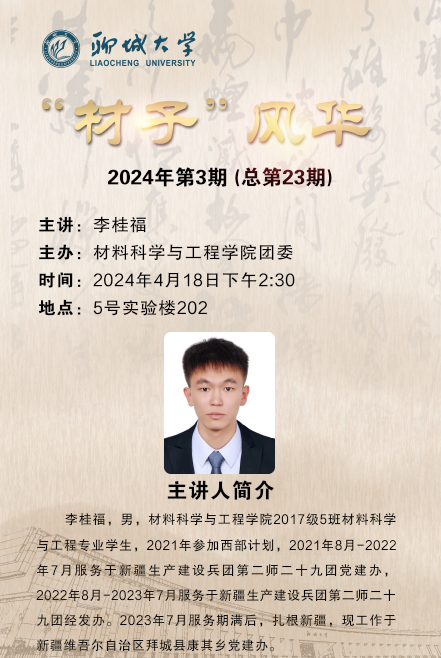 为进一步做好老员工志愿服务西部计划工作,弘扬志愿精神,引导和动员青年员工到西部去、到基层去、到祖国和人民需要的地方建功立业,2024年4月18日,信誉最好的十大体育平台在5号实验楼202线上开展西部计划专题分享会暨2024年“材子”风华第3期活动,邀请2021届西部计划志愿者李桂福作西部计划专题分享。
