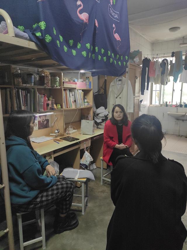 走访期间,辅导员杨淑茜在资助助理的陪同下走进员工宿舍,慰问同学们的身心健康,辅导员在了解同学安全与身心健康的同时,与贫困生同学进行了简单的交流。对贫困的同学关心备至。并且希望宿舍之间要互帮互助,共同为宿舍文化做出贡献,把宿舍打造成和谐温馨的家园!
