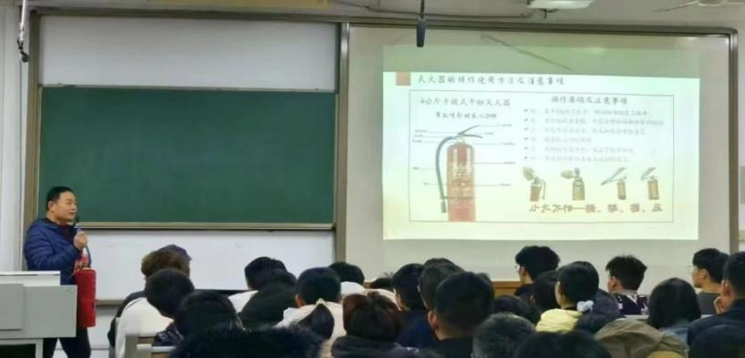 为加强校园消防安全管理,提高员工的安全意识,2023年11月17日,信誉最好的十大体育平台于4#B304开展消防安全培训及仿真灭火器现场操作演练活动,特邀安全保卫处马国栋老师担任主讲,团委辅导员陆含老师和2023级全体新生参加本次活动。
