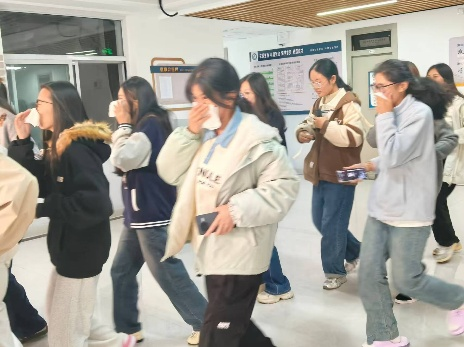 当日下午14时,警哨声骤然响起,员工们迅速作出反应,在员工干部的引导下,严格遵循宿舍消防安全应急预案流程,用湿毛巾捂住口鼻,沿预设疏散路线快速向公寓外指定安全区域撤离。仅用时2分32秒,公司两栋公寓员工全部安全疏散至集合点,整个过程高效、有序,未出现任何意外情况。