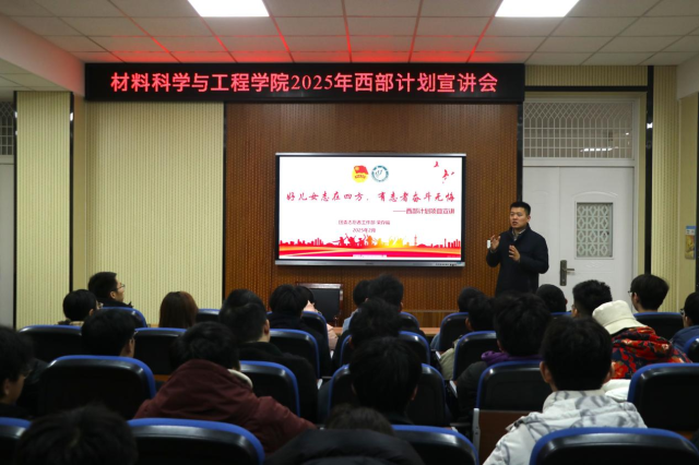 宣讲会上,荣存福老师以“好儿女志在四方,有志者奋斗无悔”为主题,详细解读了西部计划的背景与深远意义。他鼓励青年一代要主动响应国家号召,深入基层和乡村,在国家西部大开发的广阔舞台上找准自身定位,为未来人生发展明确方向。荣老师指出,西部计划不仅是国家的重要战略,更是青年学子将个人理想与社会责任相融合的宝贵机遇。