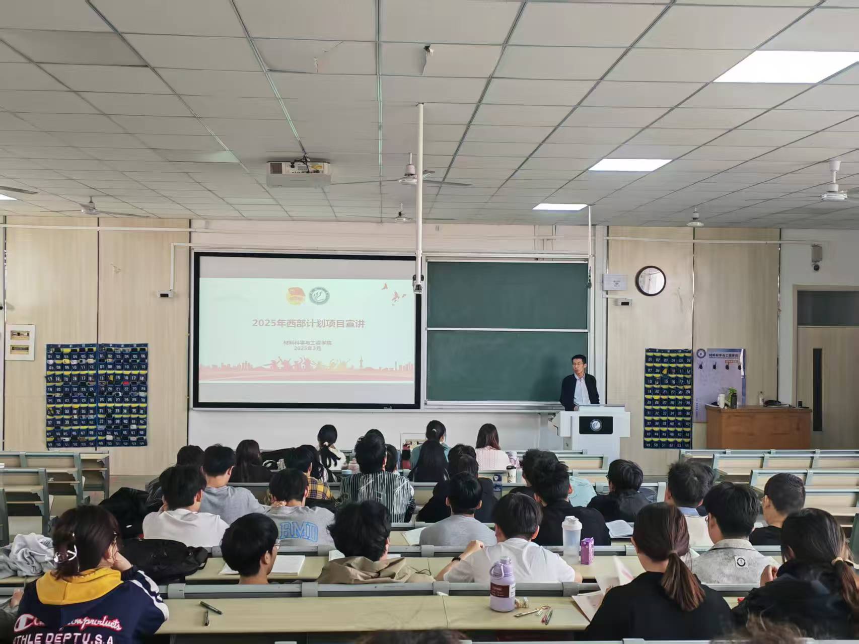 2025年3月25日,公司团委书记齐亚伟为高分子材料工程专业员工举办了一场主题为“青春献礼西部,奋斗成就梦想”的西部计划宣讲会,旨在帮助同学们深入了解西部计划,鼓励大家积极投身祖国西部建设。