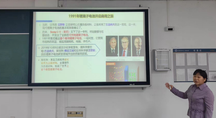 张老师从电池对科技发展的重要性开始谈起,向同学们科普了电池技术的发展历史,以此引出中国锂电池产业研究现状。随后,张老师向同学们讲解电池的结构与发电效率和储存电量的大小的关系,加深了同学们对锂电池相关技术了解。同时以我国主要的锂电池企业相关领域取得的成就为例,帮助同学们了解我国锂电池发展趋势,鼓励同学们要关注科技发展,积极学习和掌握新技能。最后,张老师通过讲述电池对生产生活的影响,明确储能科技发展对国家经济发展的重要性,扩展了同学们的视野。