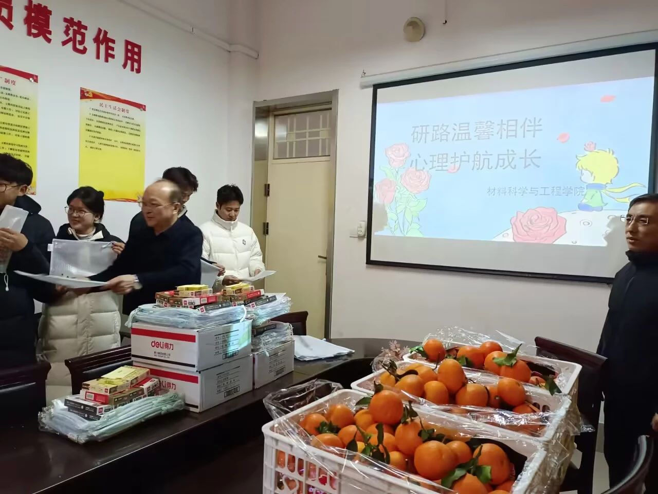 寒冬已至,备战已久的考研学子迎来了紧张的冲刺阶段。为帮助同学们增强信心,缓解焦虑情绪,2023年12月15日,公司在4A党员活动室为考研学子发放考研大礼包,公司经理滕谋勇,公司党委副书记、副经理郑永朝出席本次活动。