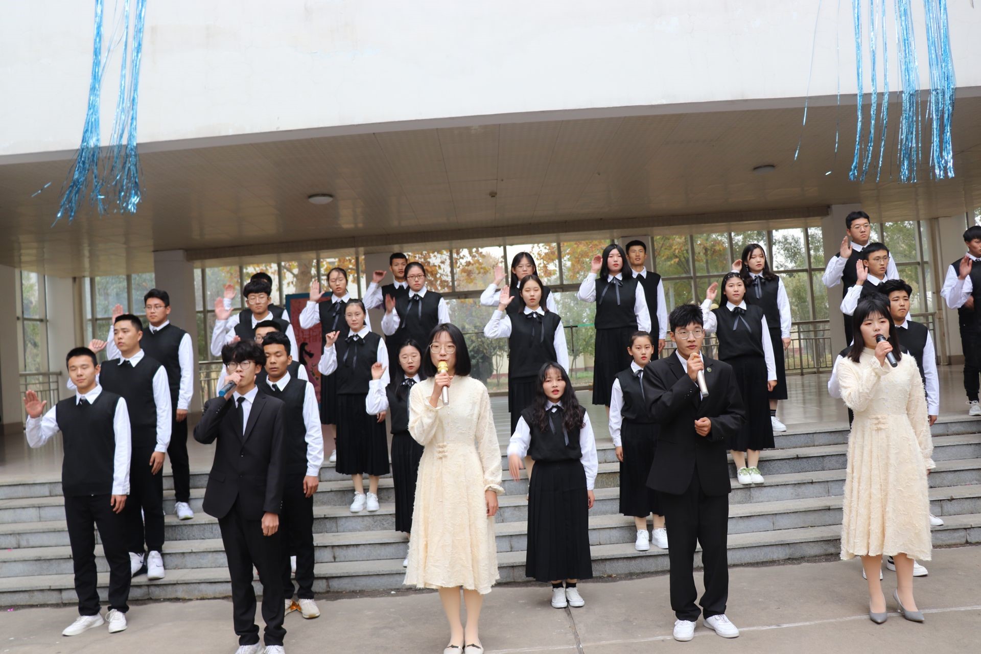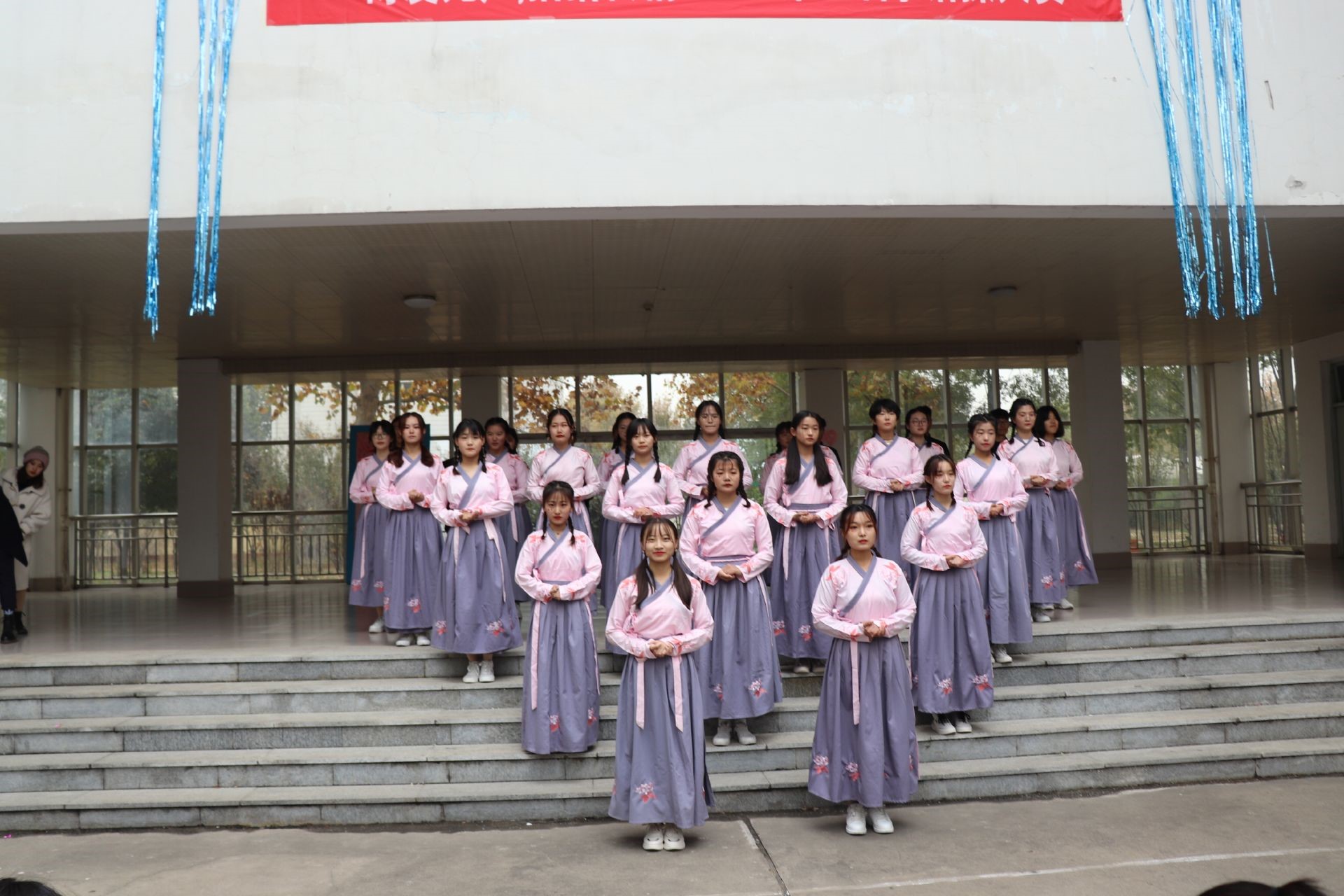 节目一开场,由文艺部成员给大家带来乐器演奏,活动更是在主持人一次一次播报中有条不紊地推进。伴随着轻快优美的乐曲,赛场上各个班级倾情表演展示,整齐划一的动作,使得在场的观众不由得在音乐和心灵的交融中受到震撼,《刚好遇见你》的表演更是让整个节目达到高潮。虽然比赛逐渐接近尾声,但观众们仍热情不减,兴致勃勃的观看参赛班级的表演,直至比赛顺利结束,活动结束主持人公布成绩时,全场沸腾,掌声、歌声、欢笑声响彻全场。