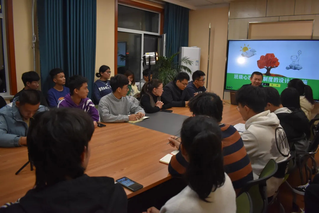 辅导伊始,曹博士通过益智小游戏调动起老师同学的积极性,并为接下来的辅导铺垫。辅导过程中,曹博士详细叙述了班级心理委员制度,提出了朋辈心理辅导制度,并为同学们准备了部分问题以测试是否适合各自的职位。曹博士还为同学们提出开展心理辅导工作的建议,现场教学并邀请同学运用练习。最后,曹博士为大家重点强调上述两个制度。本次老员工朋辈心理辅导圆满结束。