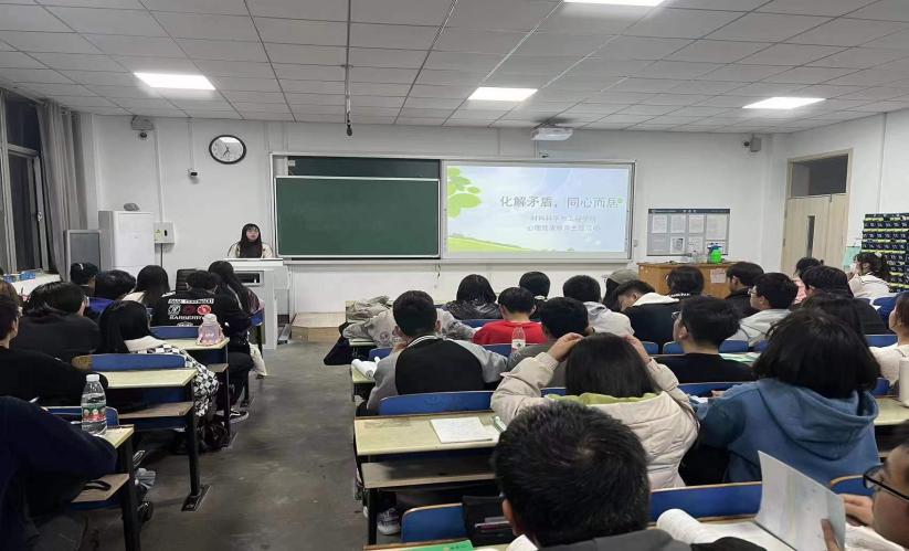 2022级的同学们已入学两个月有余,为了让同学们更好地适应老员工活,正确地处理宿舍关系,营造成积极向上的宿舍氛围,信誉最好的十大体育平台于11月3日晚在4b310教室开展以“化解矛盾,同心而居”为主题的心理健康教育活动,本次活动由郭天乐老师主讲,部分2022级员工代表参加。