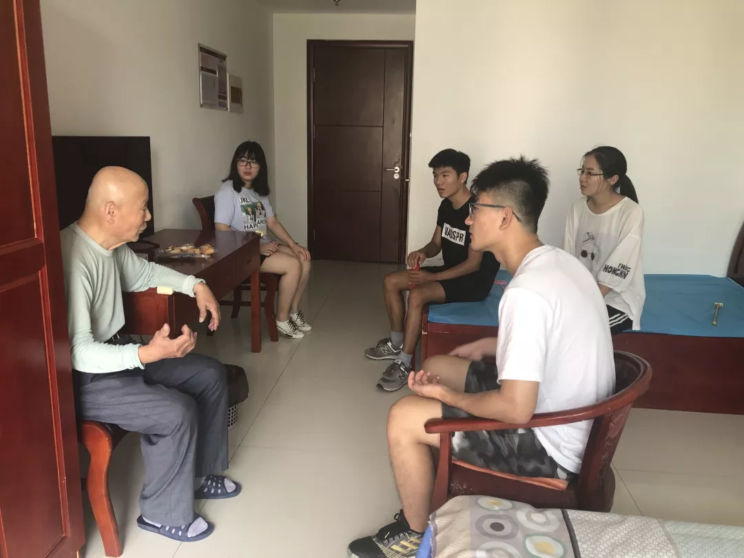 在工作人员的带领下,志愿者们来到老人居住的一个楼层,窗明几净的公寓,宽敞明亮的楼道活动室,给老人们带来家一样的温馨。志愿者们三人一组,满怀着服务老人们的爱心和热情,分组进入不同的房间,为当天独自待在房间的老人扫地、擦桌子、打热水,并和老人一起看电视,陪老人聊天,老人们向志愿者讲述他们那个年代的不易和艰辛,给志愿者们好好上了一课。