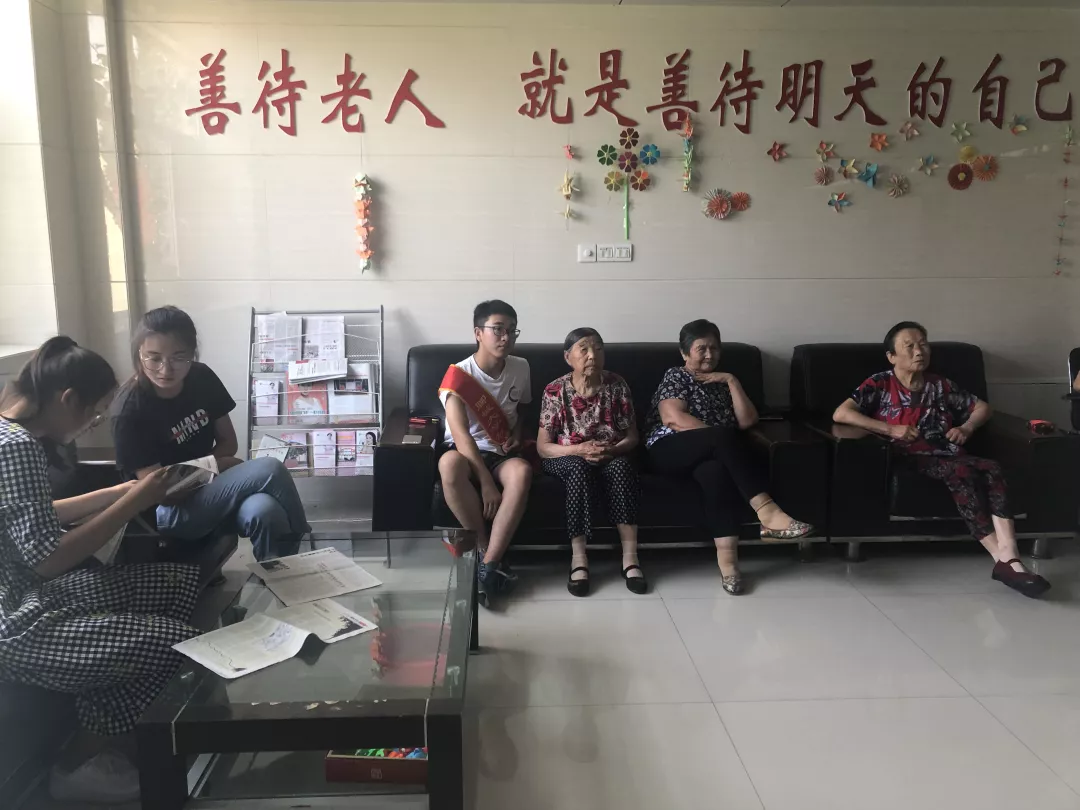 有的老人很健谈,非常关注国家大事,把领导人在会议上所说过的话记在心里,一直热泪盈眶地给志愿者们重复,他还问志愿者们什么样的文章是最好的文章,志愿者们说的五花八门,但都不是老人想要的答案,老人的答案只有3个字:“简而明”,简简单单地三个字不只是对好文章的深刻阐述,更是人这一生的最好写照。过了一会,志愿者和老人们一起在大厅里,欣赏志愿者们表演的小节目,老人们也跟着哼唱着老歌,其乐融融。欢声笑语中,老人和志愿者们忘却了年龄,忘却了人生历程上的代沟,在短短的时间里成了知心的朋友。