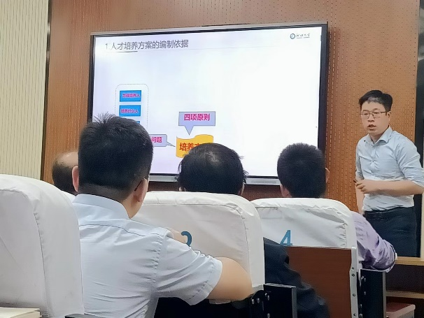 李光副经理介绍了公司2022版本科专业人才培养方案编制工作推进情况。材料科学与工程、高分子材料与工程、金属材料工程、新能源材料与器件四个专业负责人李朋、战艳虎、赵性川、刘君昌就本专业人才培养方案修订依据、调研过程、培养目标定位、毕业要求指标点分解、专业课程体系优化、实践课程设置、特色与优势等内容作了汇报。